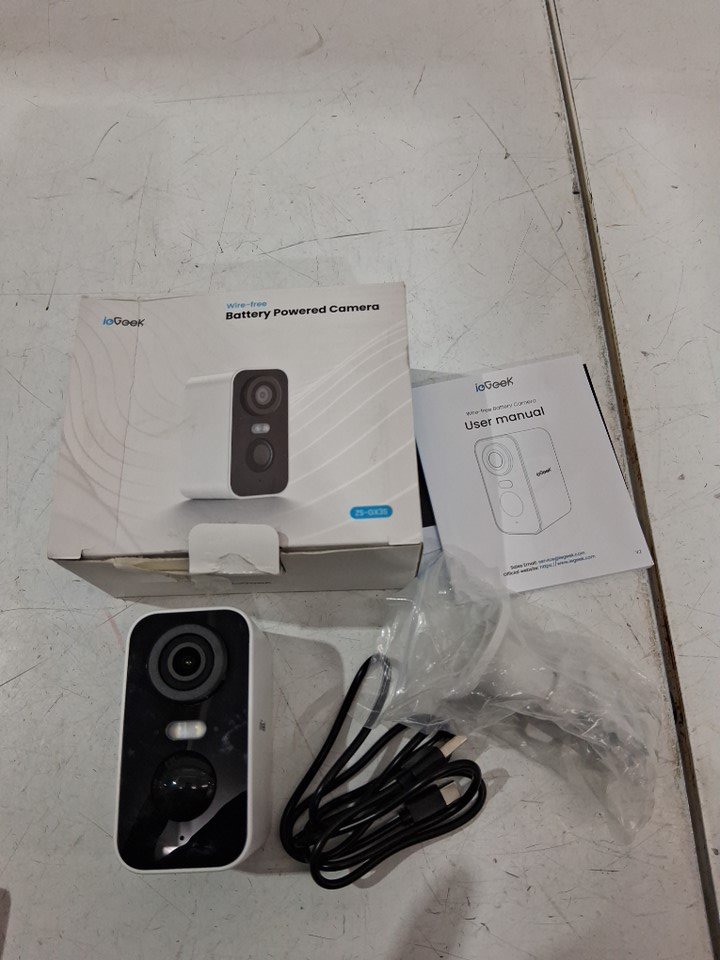 IEGEEK WIRELESS SMART OUTDOOR SECURITY CAMERA - BATTERY POWERED WITH wifi, 2k hd video, COLOUR NIGHT VISION, 2-WAY AUDIO, MOTION SENSOR, SPOTLIGHT LIGHTING - WHITE (MODEL: ZS-GX3S)