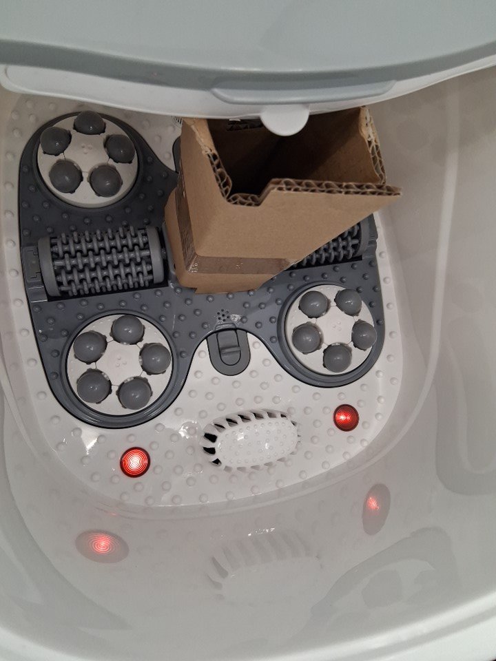 Item has been tested for power. Please note one of the feet of the massager is broken and missing leading to a major crack at the bottom (see photos for reference).