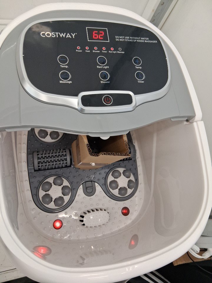 costway portable all-in-one heated foot spa bath with motorized massager - 15" x 18" x 15" - grey/white - (model: ep24368gr)