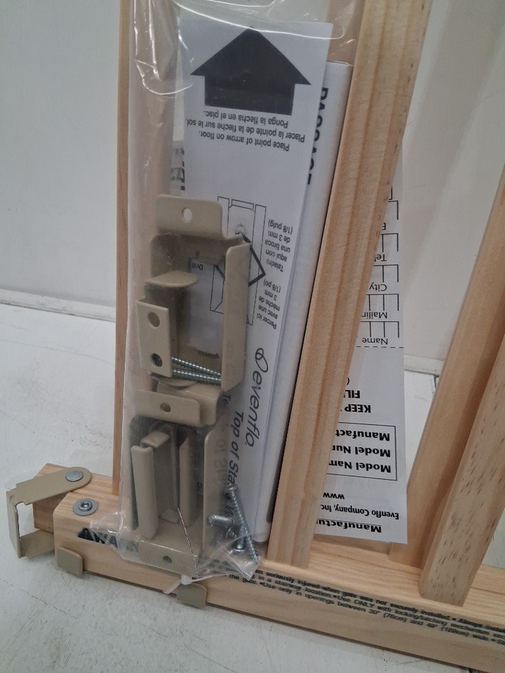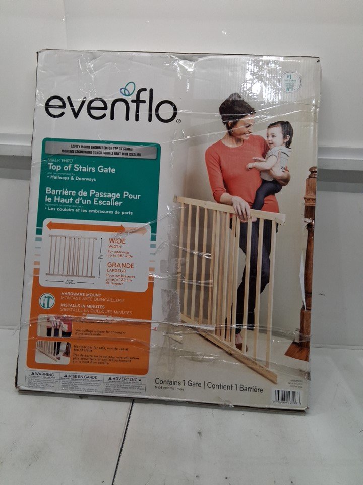 EVENFLO WALK-THRU TOP OF STAIRS extra wide BABY and PET GATE - 32" x 30" - 48" - NATURAL WOOD brown (MODEL: 10500)