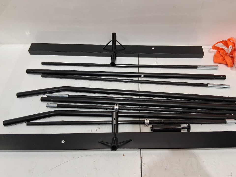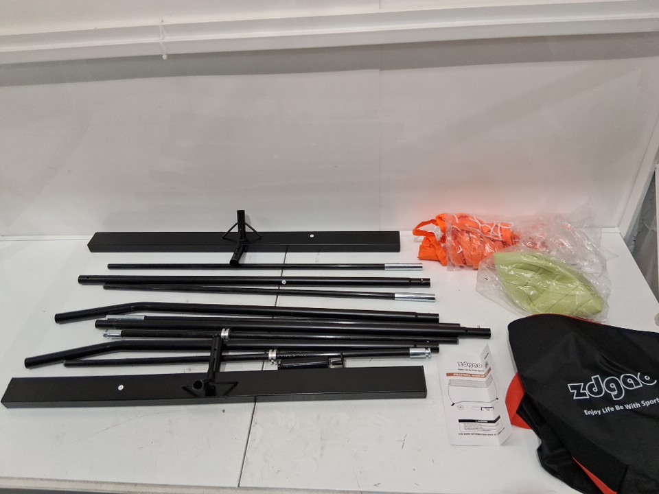 please note the product was discovered to be missing 1 of the lower poles, we believe the product can still function with out this. the product was also discovered to have some glue like residue on it along with some scratches and scuff marks, this can be cleaned, please see photos for more details,
