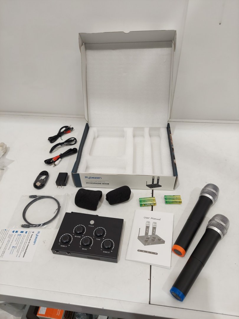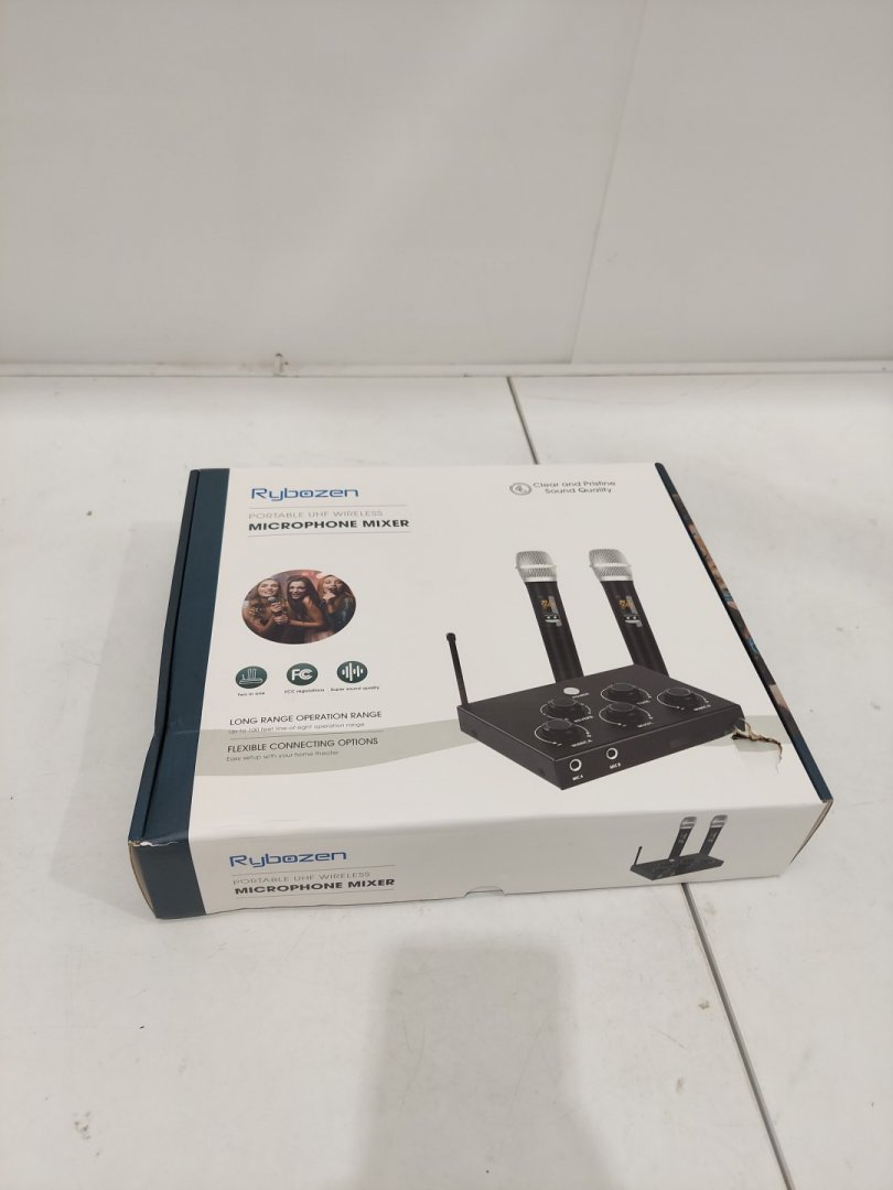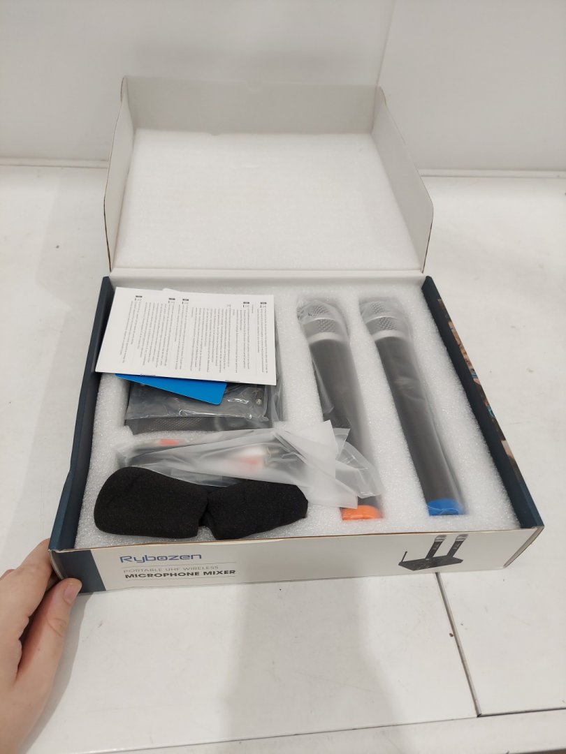RYBOZEN WIRELESS MICROPHONE KARAOKE MIXER SYSTEM - DUAL HANDHELD WIRELESS MICS FOR SMART TV, KAROOKE, PC, SPEAKER, CHURCH, WEDDING - HDMI/AUX (model: k203)