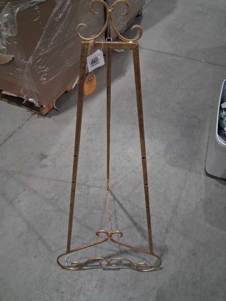 deco79 metal scroll free standing adjustable display easel with chain support - 48" tall - gold (model: 27391)