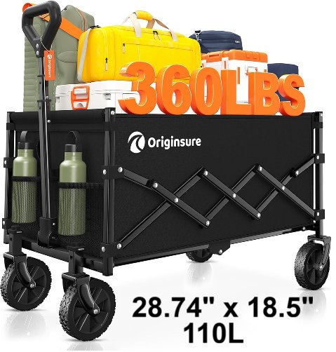originsure Collapsible Folding Wagon Cart - 110L - 28.7" x 18.5" - BLACK - (MODEL: B0DQT9F43V)