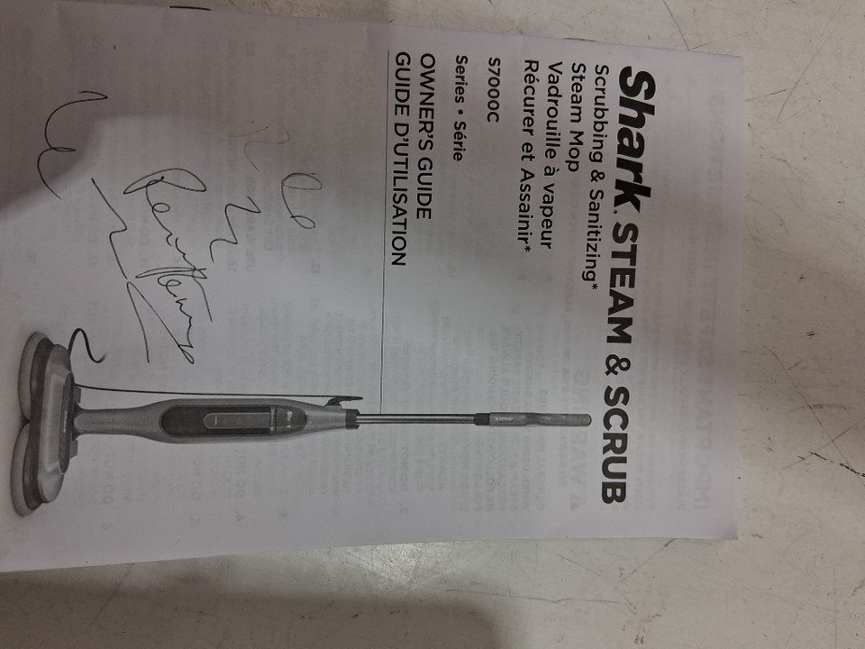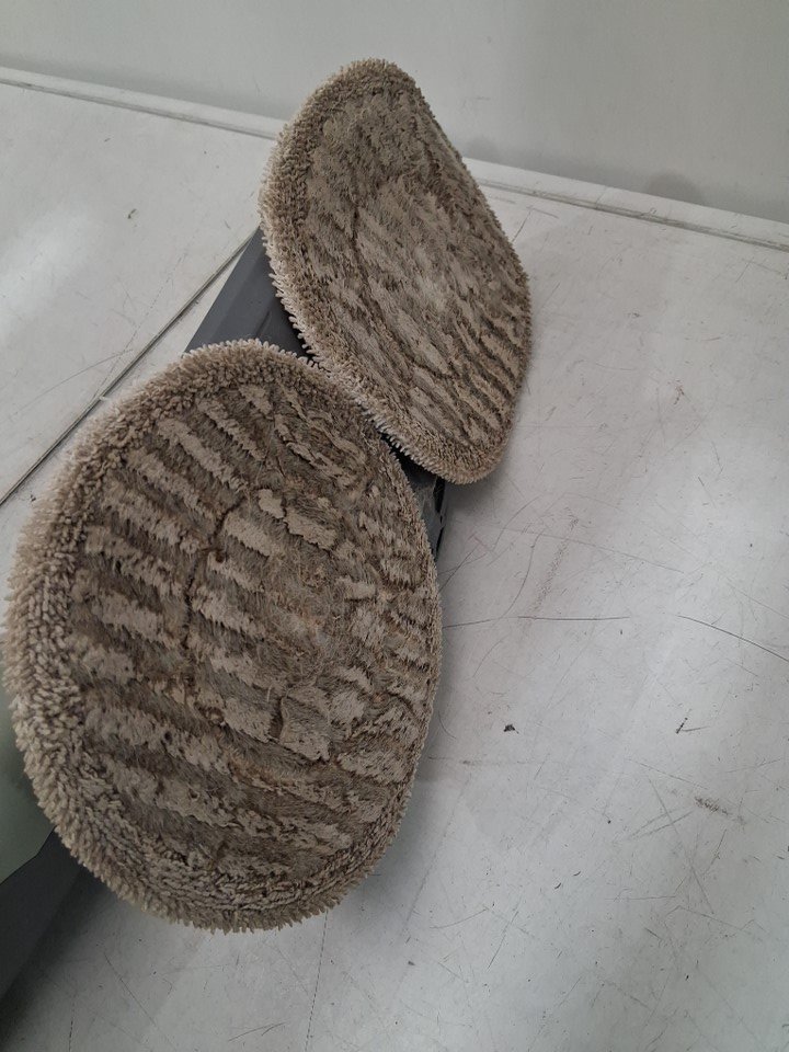 The item has water in the tank, and the mop head is very dirty from previous use. It has been tested for power. See photos for details.