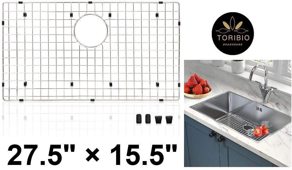 TORIBIO Stainless Steel Kitchen Sink Bottom Grid Sink Protector - ‎27.5" × 15.5" - silver (model:sus304)