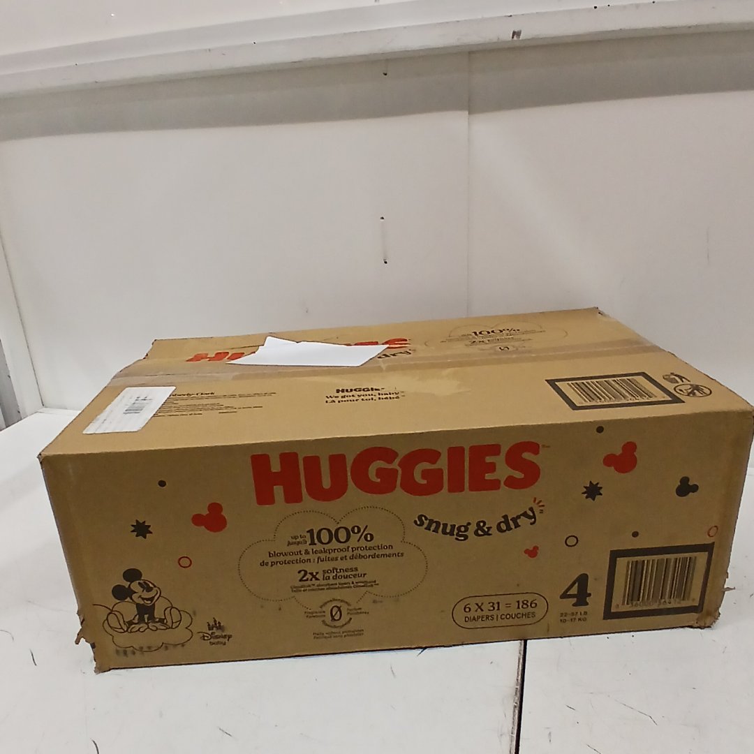 186pk huggies snug and dry diapers - size 4 - 22lb to 37lb - disney mickey mouse