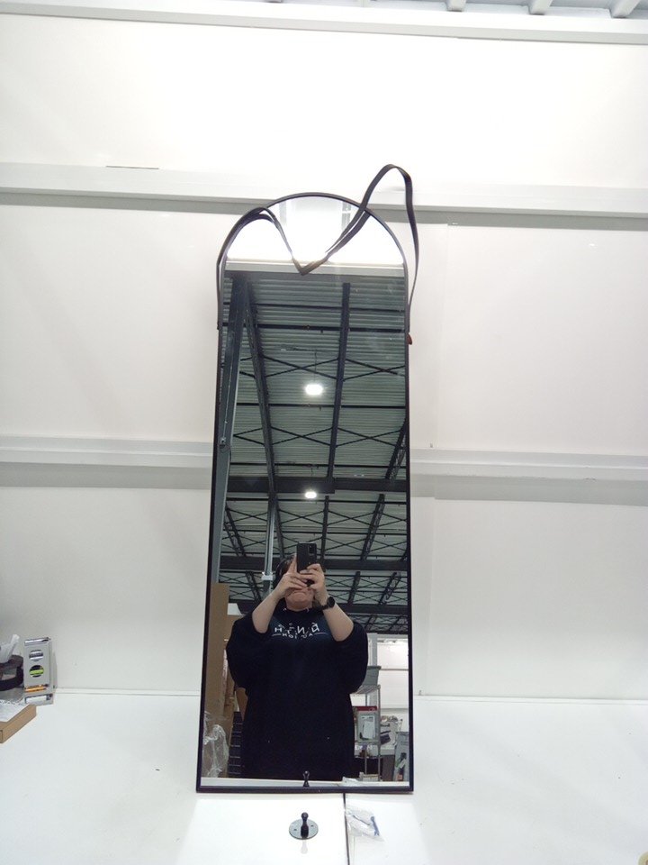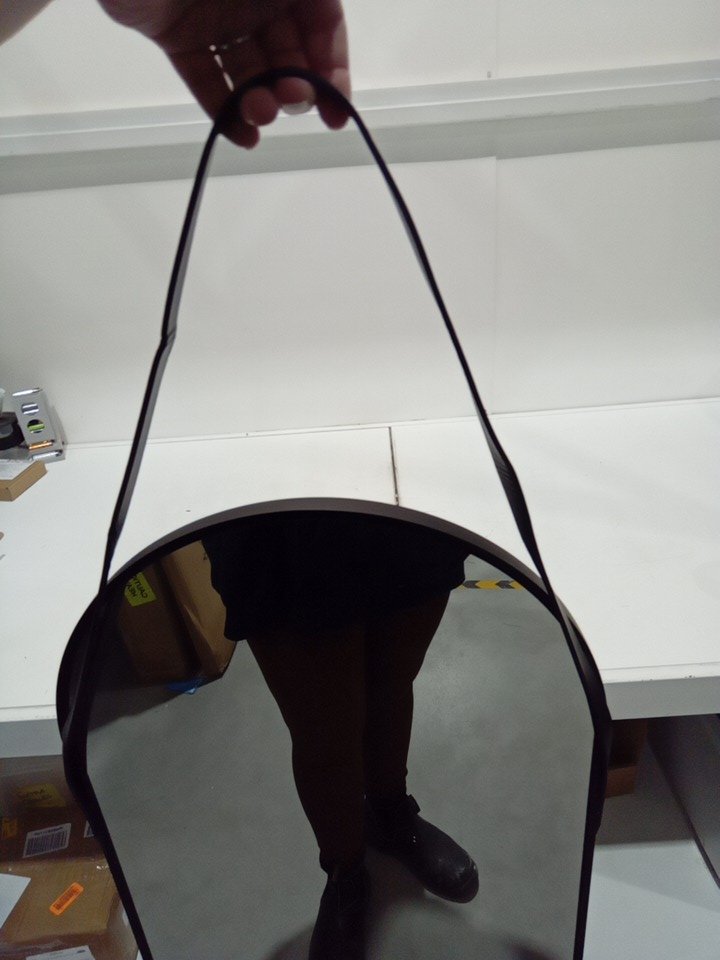 HARRITPURE Oval Hanging Mirror with Leather Strap - 48" x 16" - black