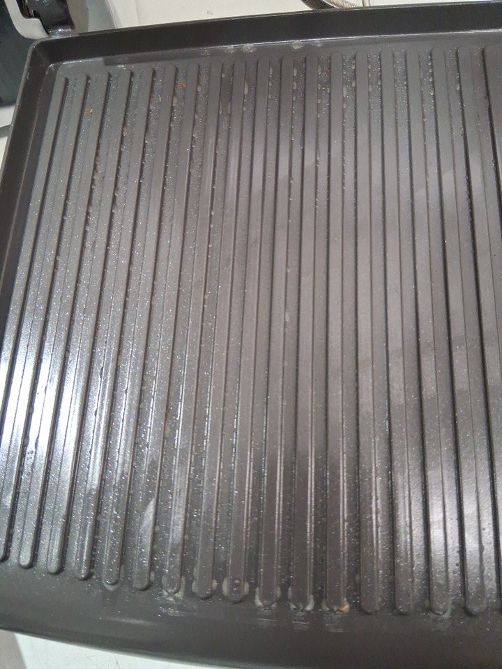 please note there is some oil residue on the press from previous use, as well the plastic part that holds the grease dripping try is cracked however we believe it won't affect the function - please see photos