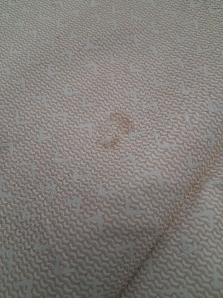 product has a small stain on it as well as some signs of hair on it from previous use (see photos)