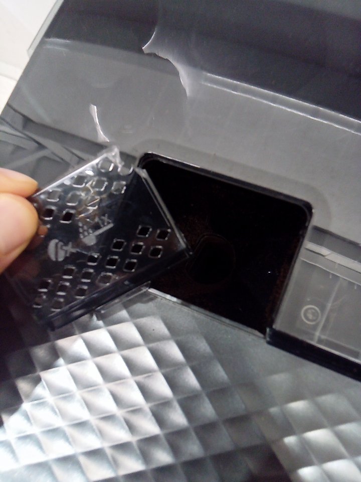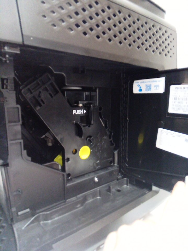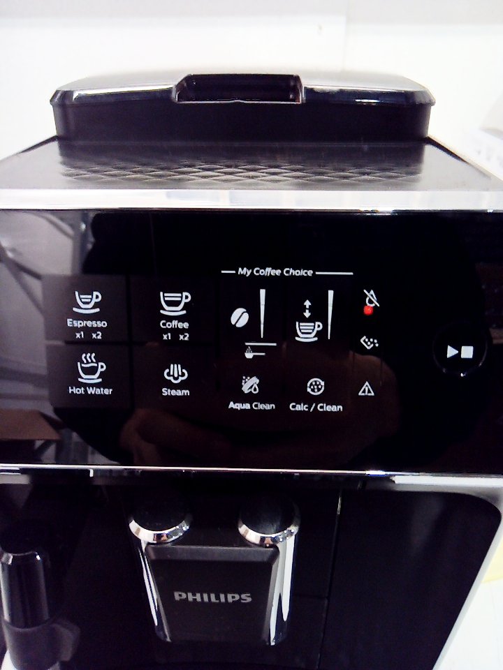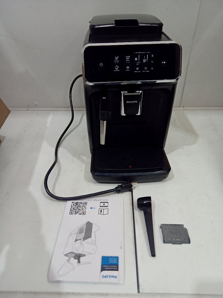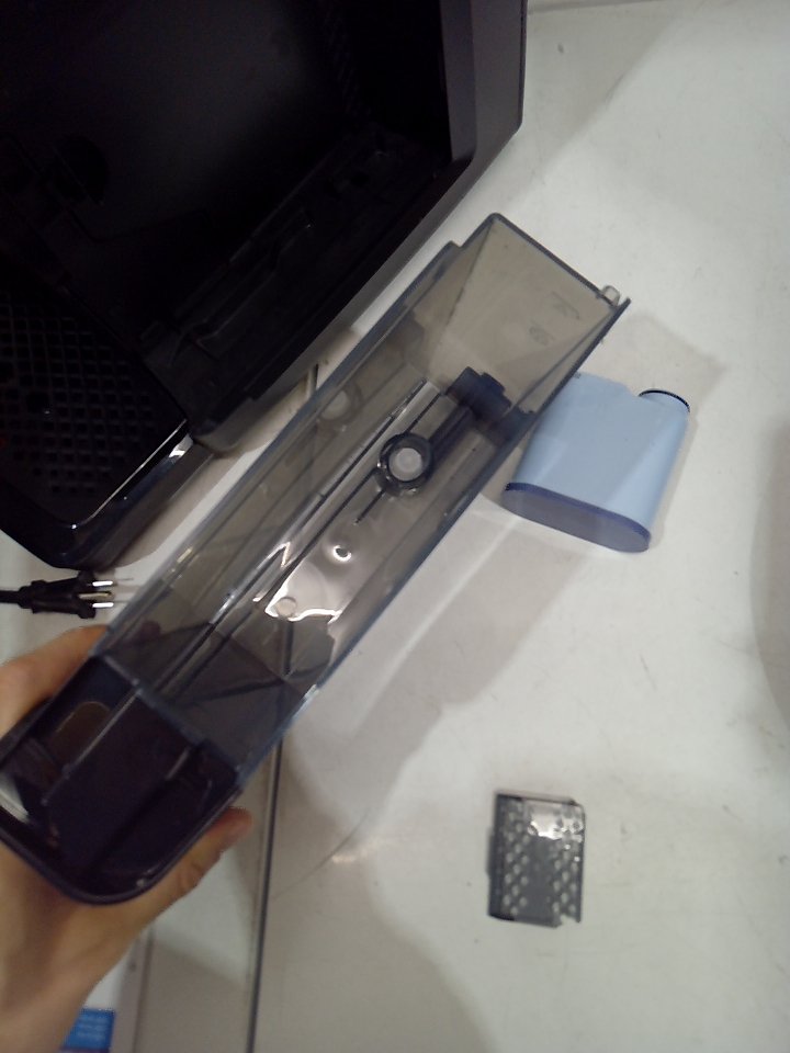 There are scratches, dust and coffee residue on/in the machine. The small plastic flap cover piece for the top has had the hinge on one side cracked off. Ours does not include any of the cleaning accessories. Tested for power. (SEE PHOTOS)
