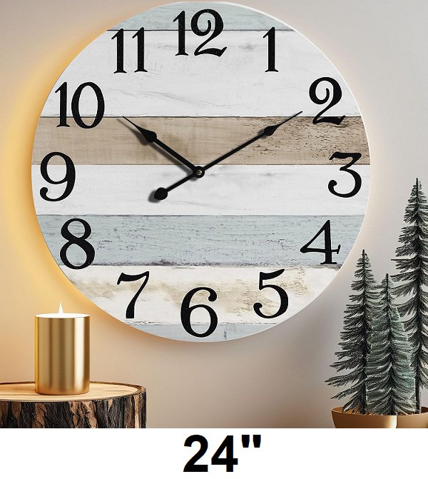 wall mounted battery operated rustic decorative clock - 24" - blue/grey