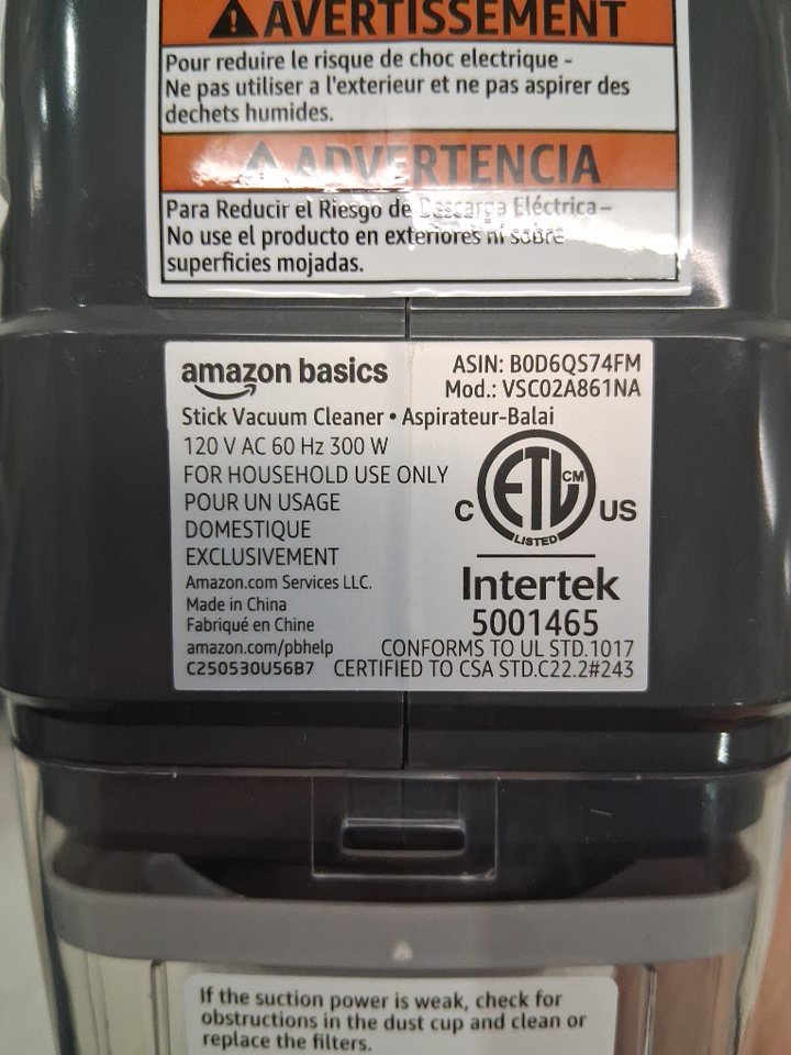 Amazon Basics 2-in-1 Corded Stick & handheld Vacuum Cleaner - black (MODEL: VSC02A861NA)