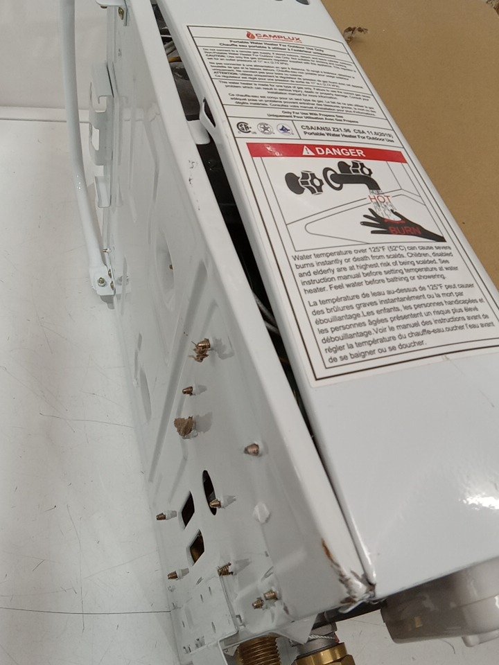 Missing the hoses, frame dented, some water marks inside from previous use.