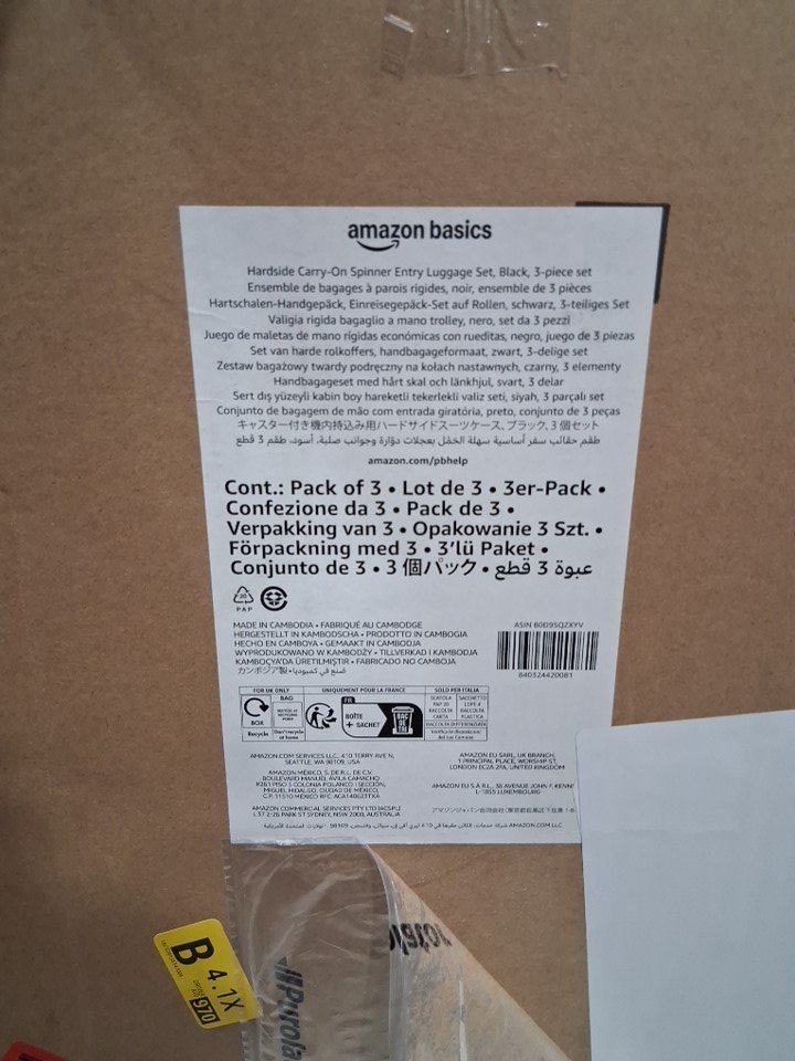 3pc amazon basics luggage set - 10"/15"/22" - black/silver (model:‎ LN20174-BL)