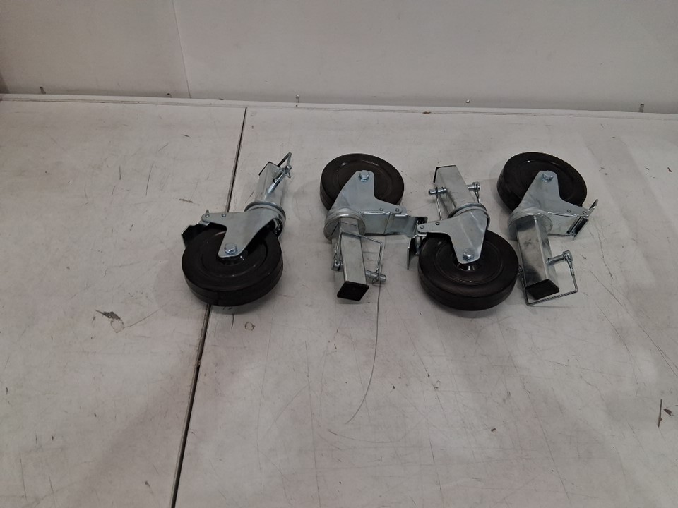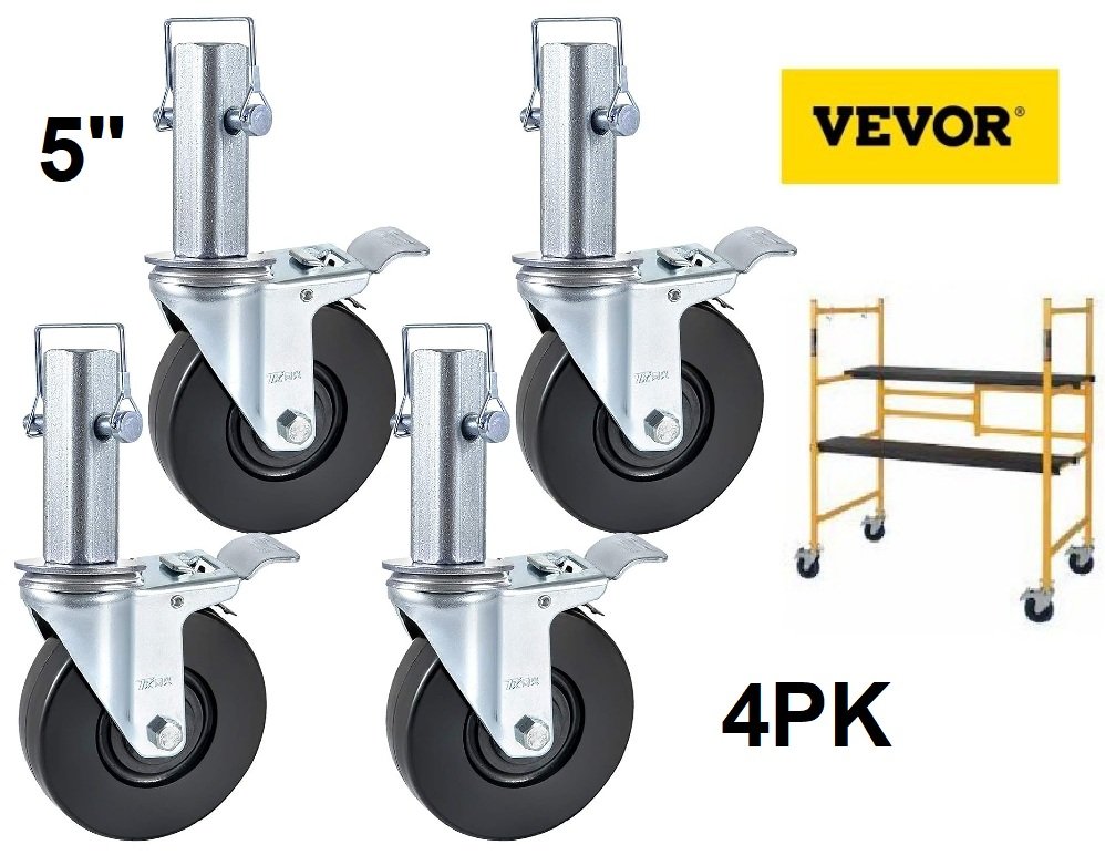 4PK VEVOR 5" SCAFFOLDING RUBBER SWIVEL CASTER WHEELS WITH DUAL LOCKING - 280LB CAPaCITY -silver/black