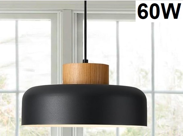 HUAWIYA E26 sockets Modern Pendant Lights Natural Wood Cap Drum - 60W - 12" x 12" x 67" - black
