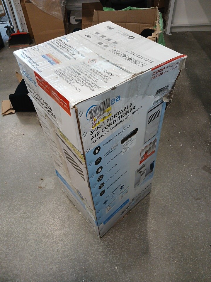 the unit has been tested for power. the remote and window accessories are missing from the box.
