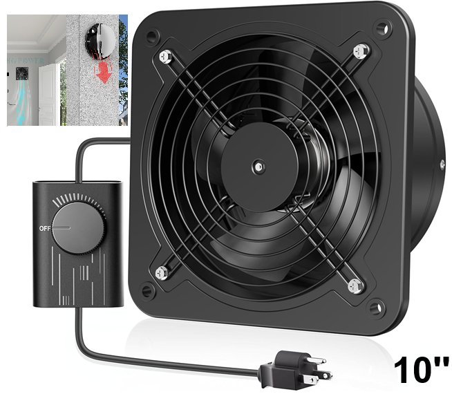 HG Power Exhaust fan with switch and damper - 100v to 120v - 74.5W - 10" fan - Black
