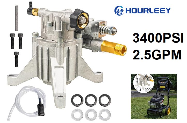 Hourleey 7/8" Shaft Vertical Pressure Washer Pump - 3400PSI 2.5GPM - silver