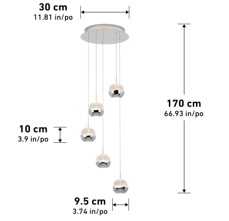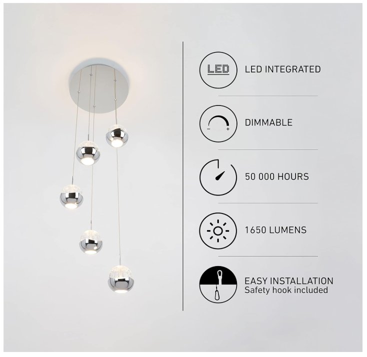 ARTIKA ORACLE 5-LIGHT hardwired LED PENDANT - 1650lm - chrome - (model: ‎ORA5L-C1)