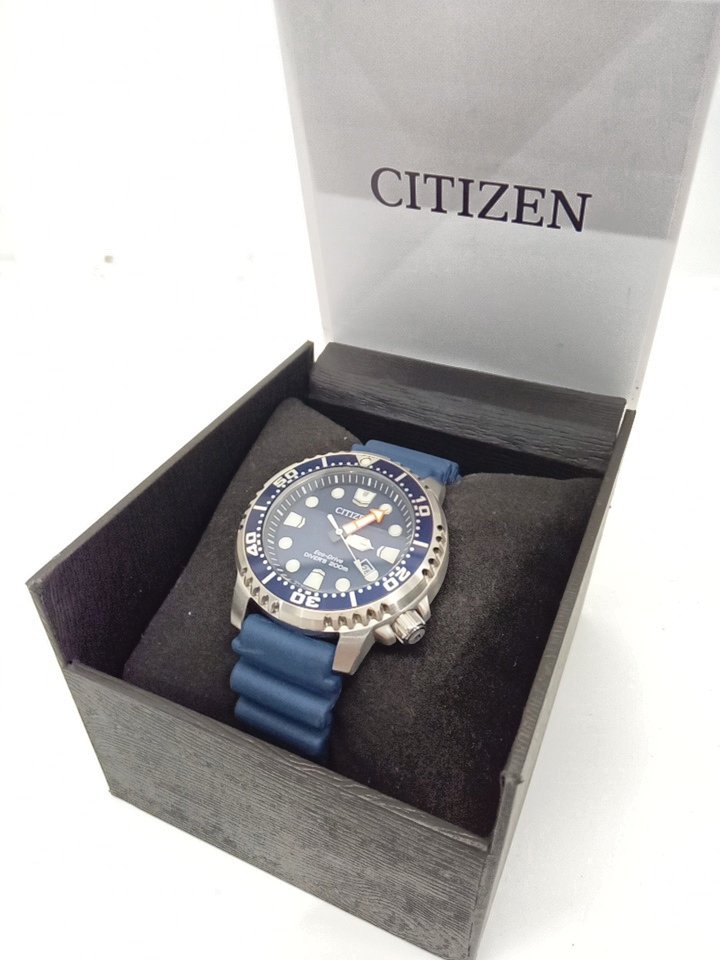 MEN'S CITIZEN ECO-DRIVE PROMASTER DIVER QUARTZ STAINLESS STEEL WITH POLYURETHANE STRAP WATCH - 44MM - BLUE/SILVER (MODEL: BN0151-09L)