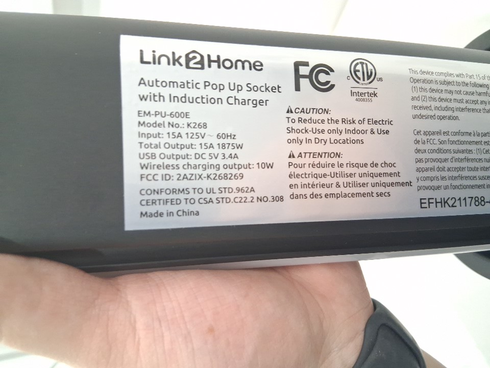Link2Home Automatic Pop Up Socket with Induction Wireless Charger - 125V - Grey - (Model: K268)