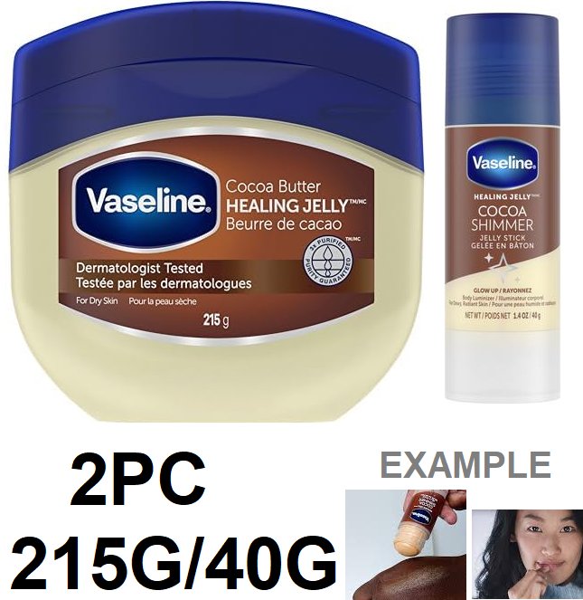 2pc vaseline cocoa shimmer jelly stick / coco butter healing jelly - 215g/40g