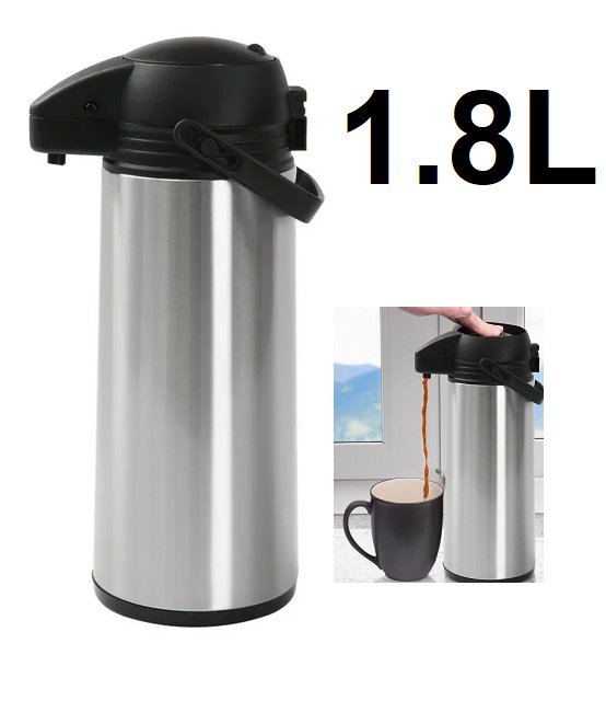 Mainstays stainless steel vacuum sealed airpot pump pot - 1.8L - Silver/black