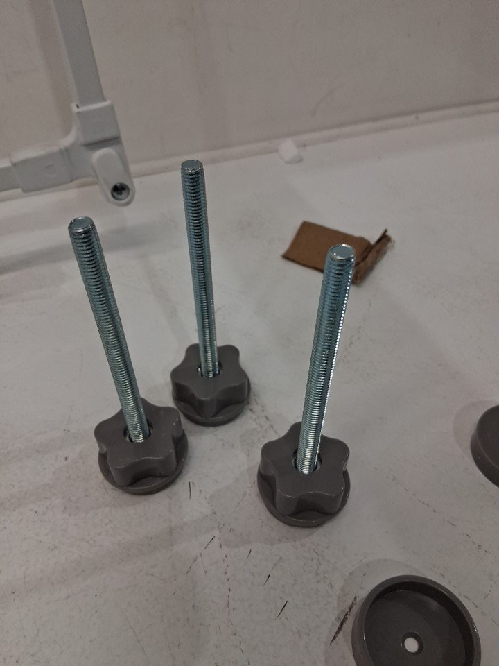 portions of it are assembled from previous use, as well as one of the adjustable feet are missing (see photos)