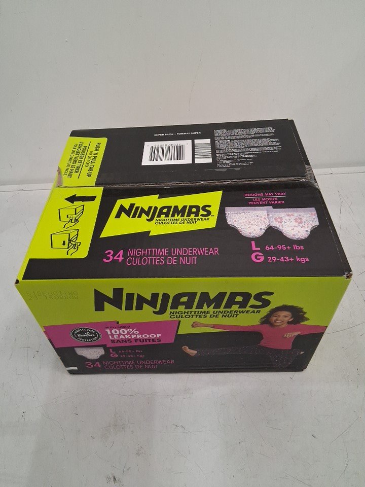 34PK GIRLS NINJAMAS NIGHTTIME UNDERWEAR WITH ODORMASK & ALL-NIGHT LEAK PROTECTION - LARGE 64-95 LBS - PINK/MULTICOLOUR