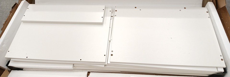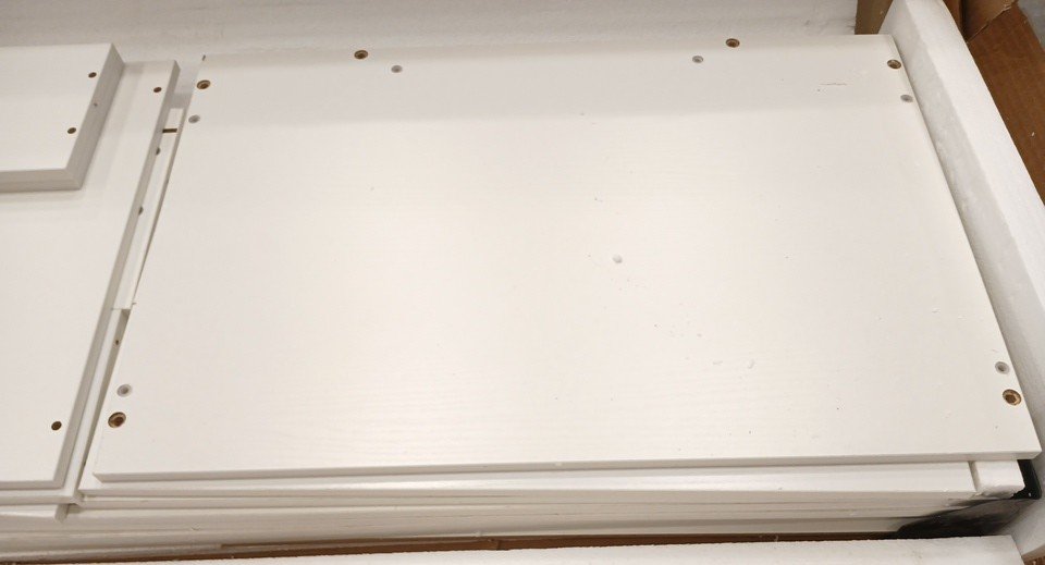 This item has previous assembly marks and some pieces have light chips on its edges (see images). Additional hardware may be required