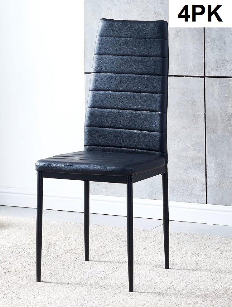4PK Dining Chairs with Padded PU Leather Upholstery, Ergonomic Curved Backrest, Heavy-Duty Metal Legs with Anti-Slip Pads - Black (Model: CH-Y-01)