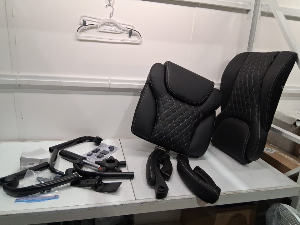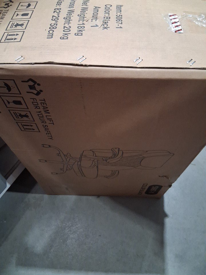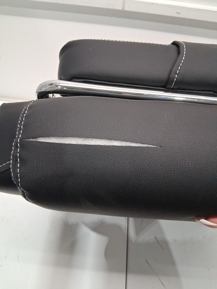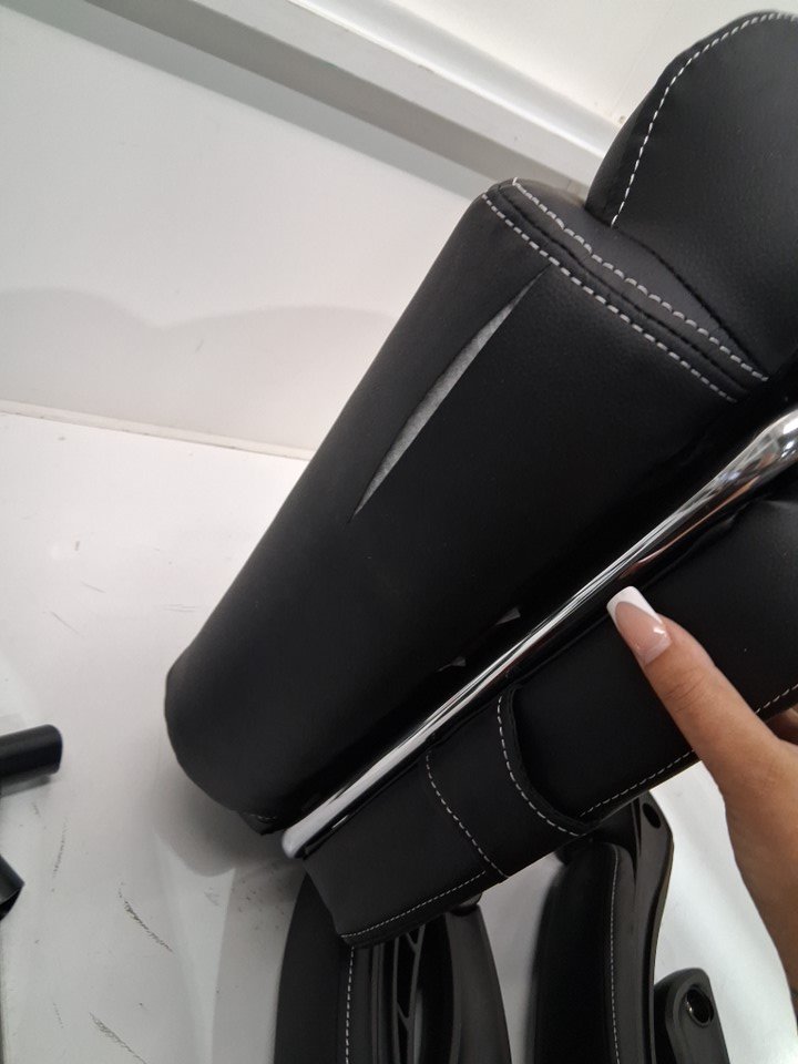 Parts of the chair has been assembled, like the legs/ wheels. Also it appears that the bottom of the seat was ripped/ cut opened when the item was packaged this should not affect the function.