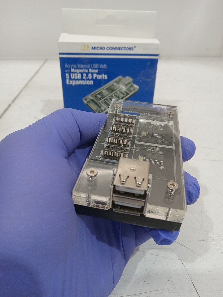 Micro Connectors Acrylic Internal USB 2.0 Hub with Magnetic Base - 5 USB 2.0 Ports Expansion - (model: S08-303-IA)