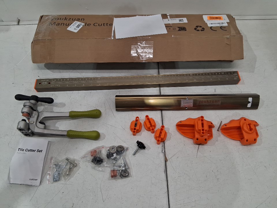 There are some scratches/scuff marks on the tile cutter indicating previous use (see photos)
