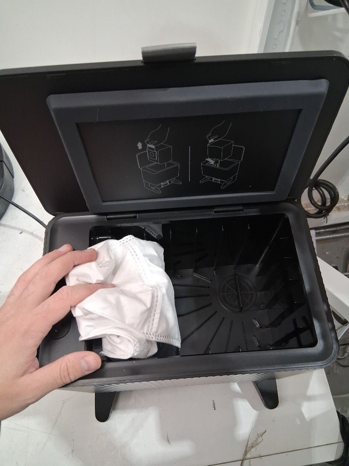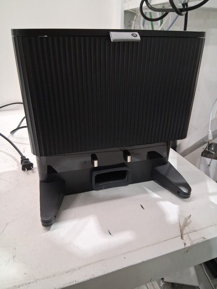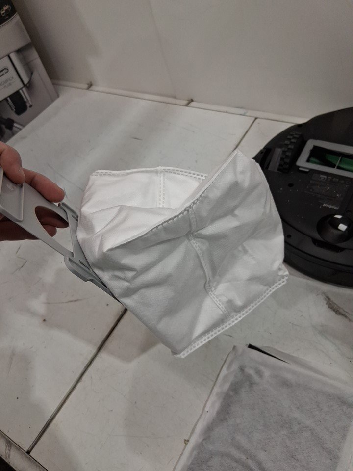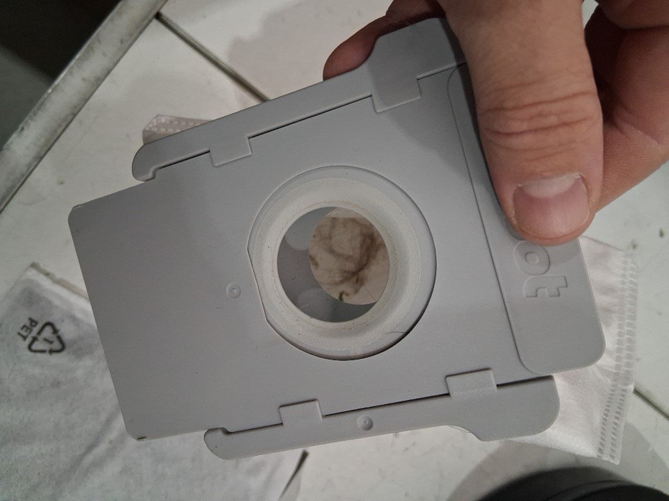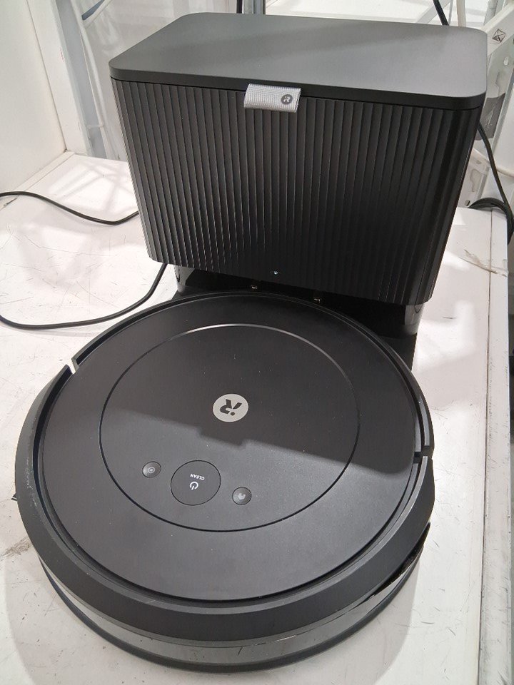 Products filter has a considerable amount of dust and hair inside the filter cartridge as well as the Roomba's filter and dust catcher. Roomba robot also has some minor damage to the front of the product. Product was tested for basic power robot will charge on dock, however battery of robot was dead so further testing could not take place.