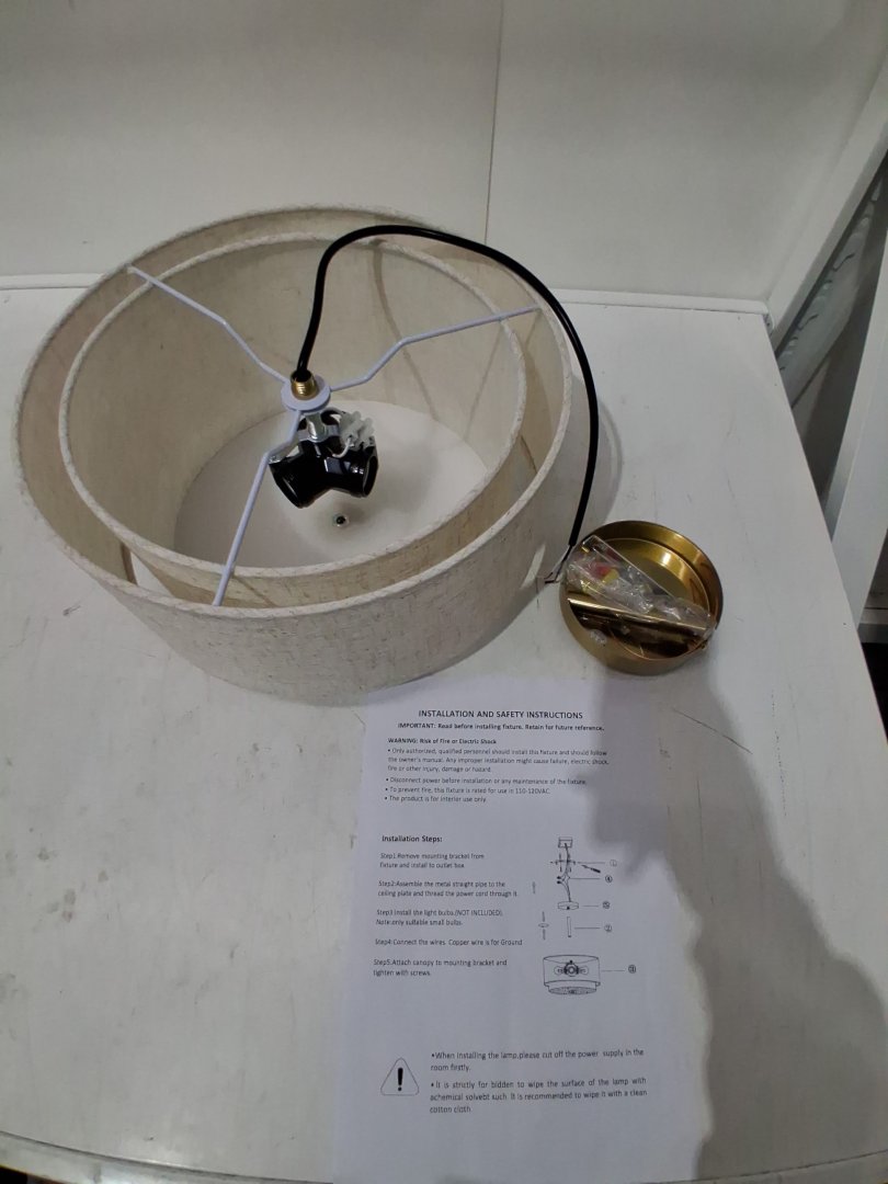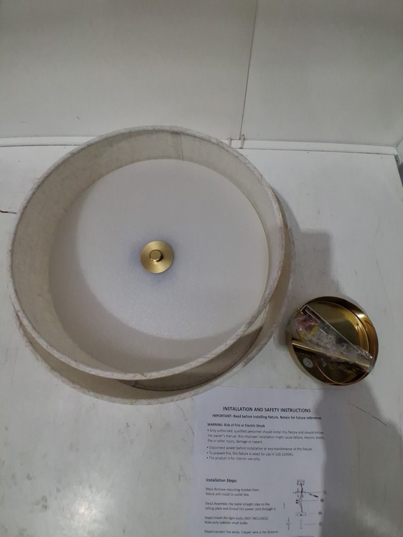 Vexagyle Semi Flush Mount Ceiling Light Fixture with 2-layer linen shade - 12.6" - linen/gold (model: cl-rx-020)