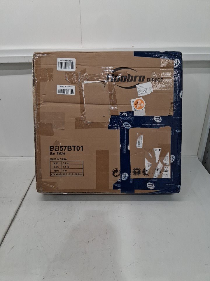 bar table has tool blemishes and scratches, hardware was loose in box and table top has finger smudges