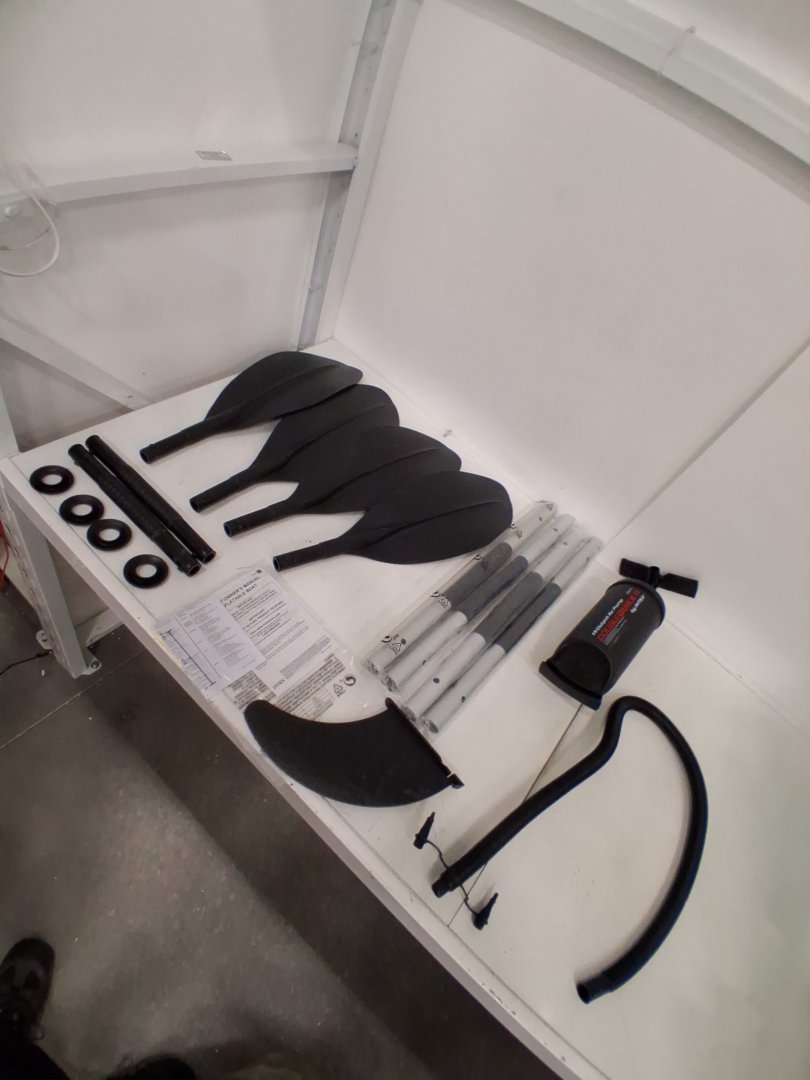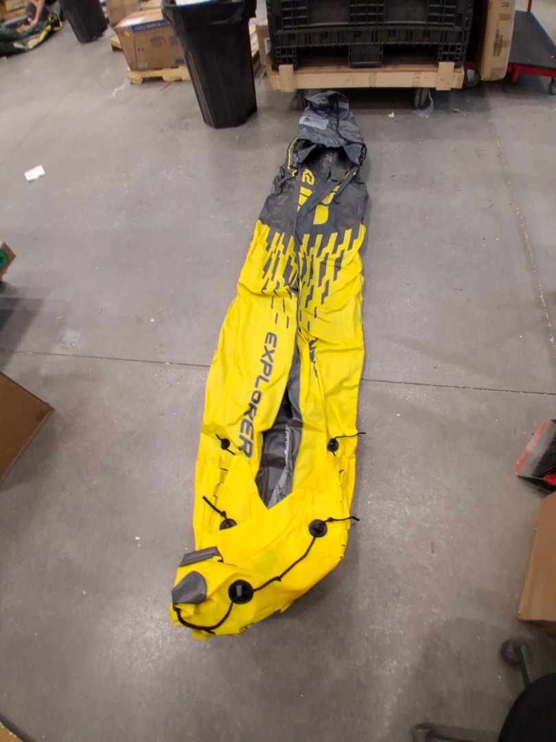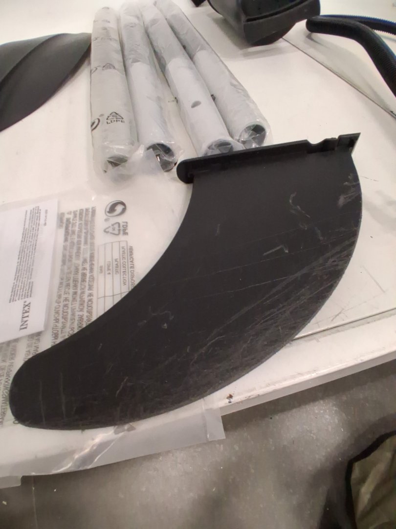 Dirt on kayak and damage to fin indicates previous use (See photos).