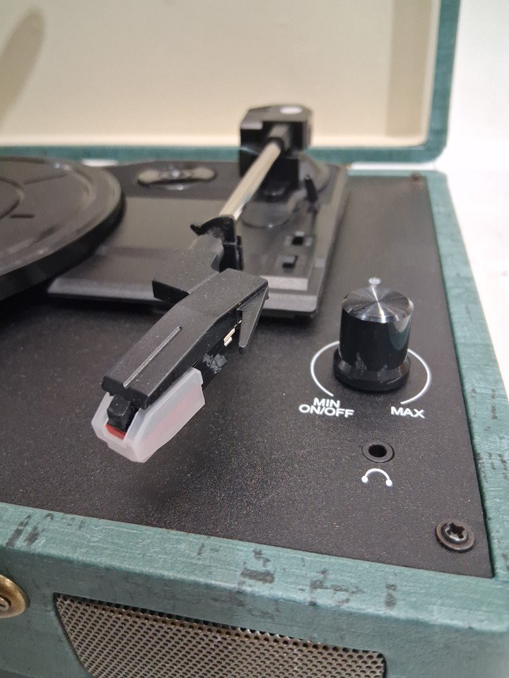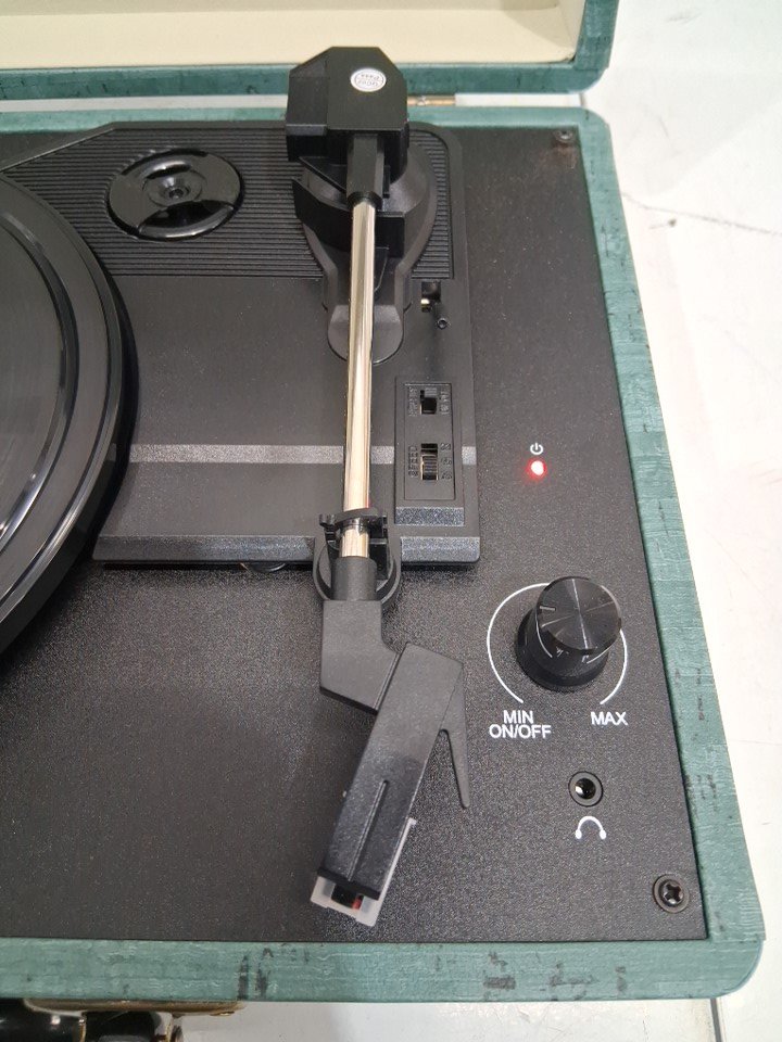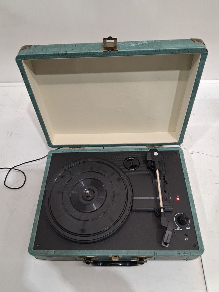 KEDOK VINTAGE RECORD PLAYER STEREO SPEAKER - 3-SPEED BELT DRIVEN SUITCASE TURNTABLE - BLUE (MODEL: M435)