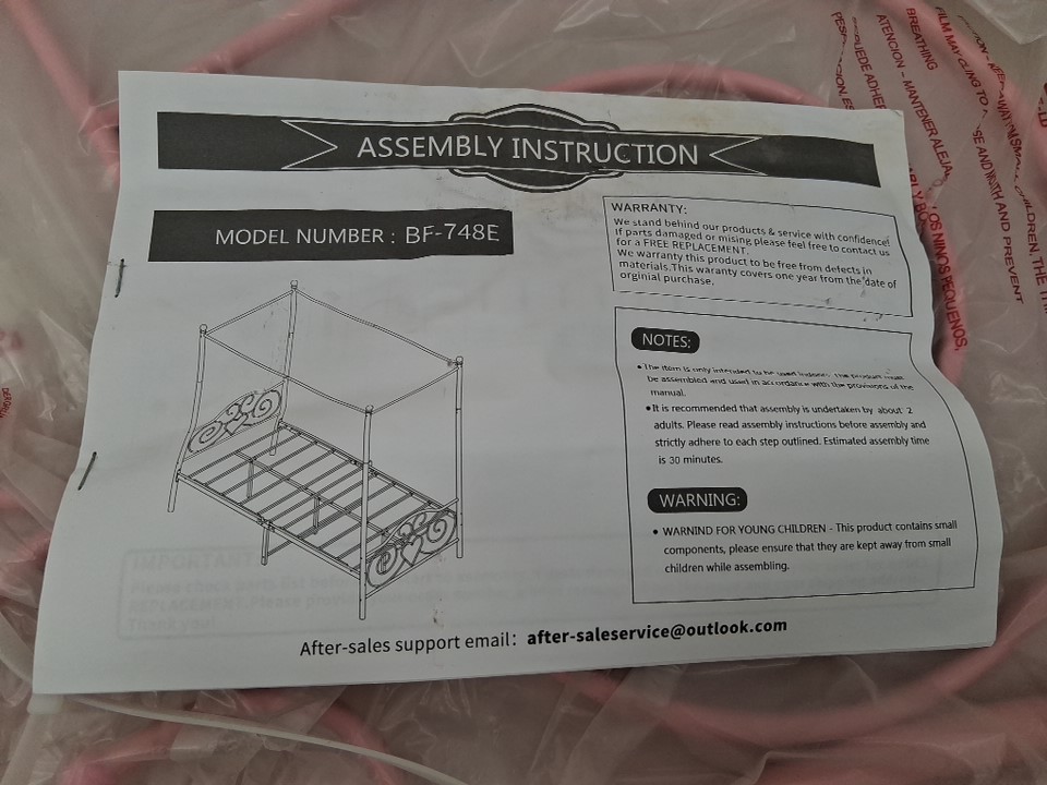 dhp canopy metal bedframe - twin - pink (model: 748e-pk)