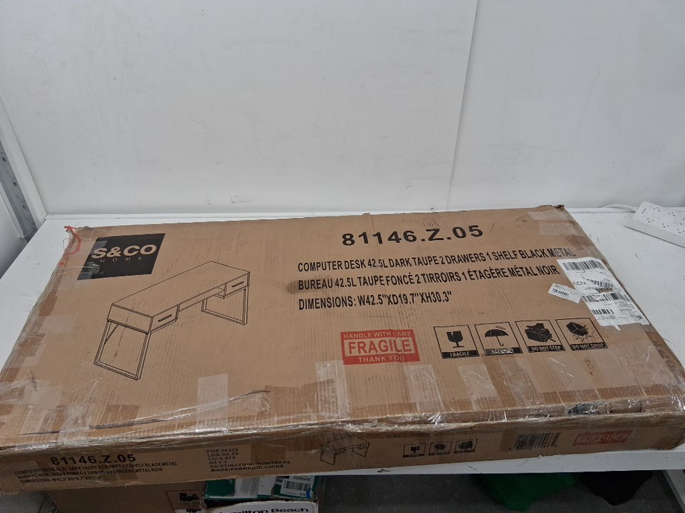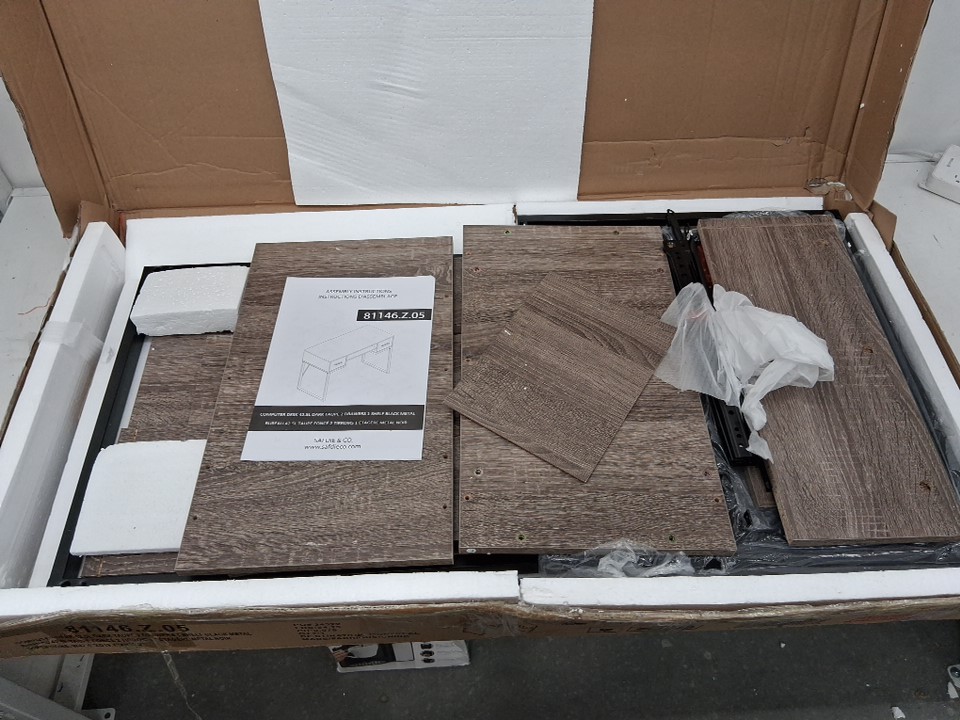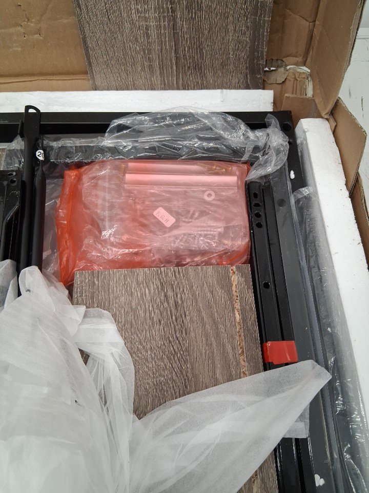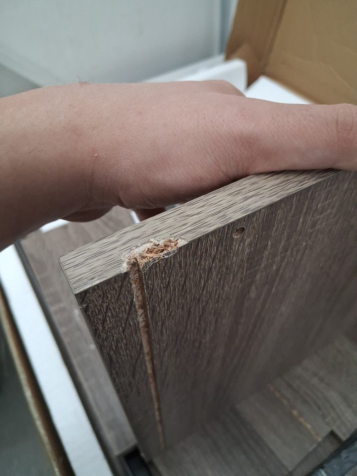 One of the drawer side pieces has a small chip in it from shipping, but this should not be visible from the outside once assembled - see photos. Aside from this cosmetic damage, appears to be in new condition.