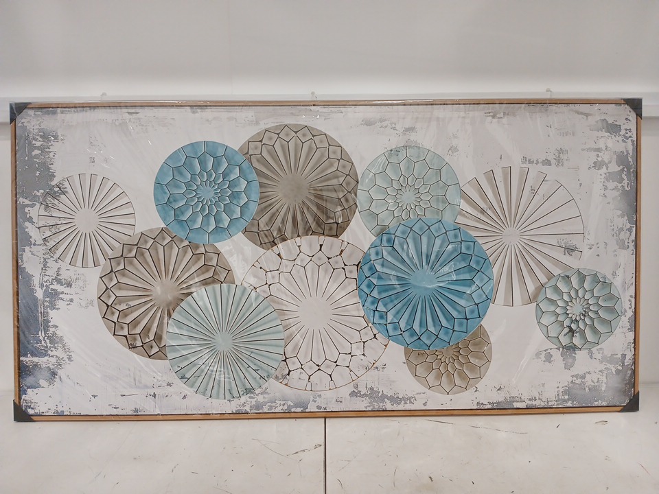 youkuart colorful abstract floral rustic wall decor canvas art - 60" x 30" - blue/white (model: 004-metal)
