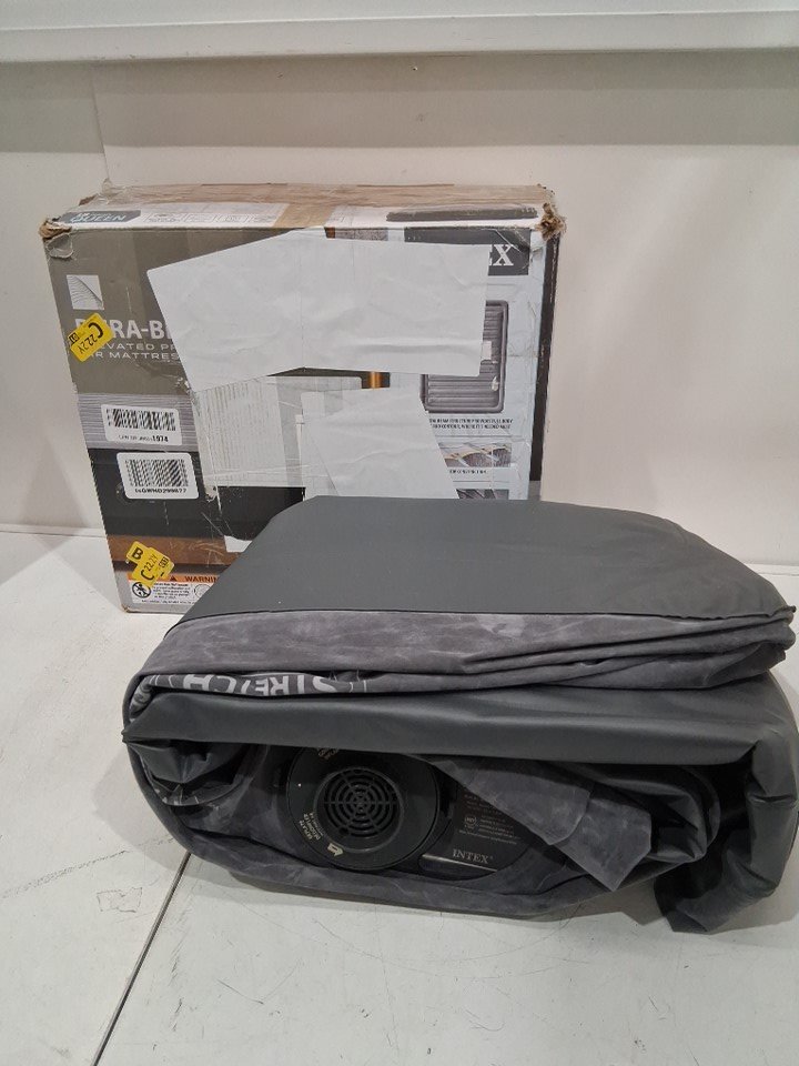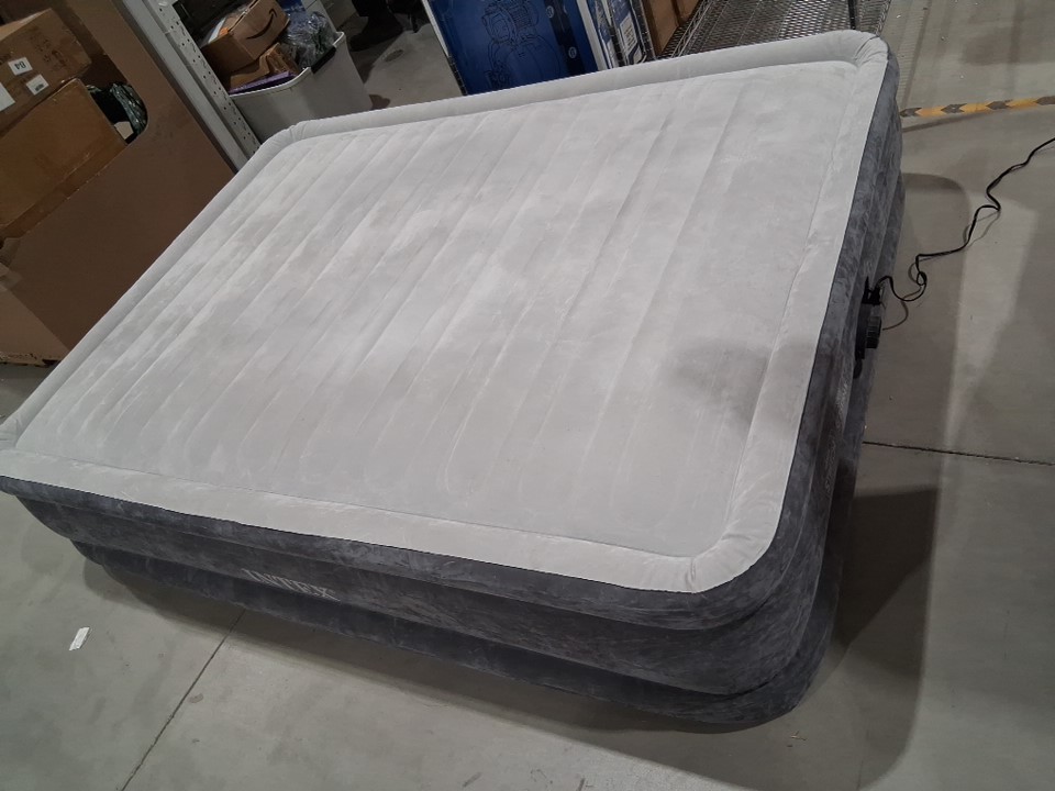 INTEX DURA-BEAM SERIES DELUXE COMFORT PLUSHFIBER-TECH inflatable AIR mattress WITH INTERNAL ELECTRIC PUMP - 18" - QUEEN - grey (MODEL:AP619D/64413ED)