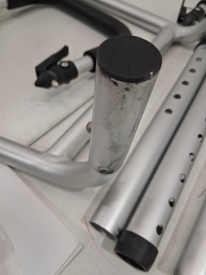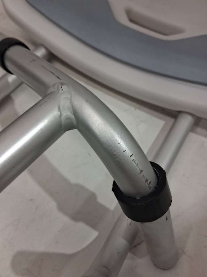 there are lots of scuff marks on the pieces for the shower chair and all pieces seem to be there, see all photos.