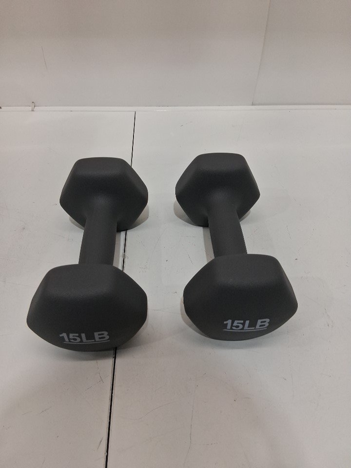 2PK AMAZON basics Neoprene Dumbbell Hand Weights - 15lbs each - dark grey