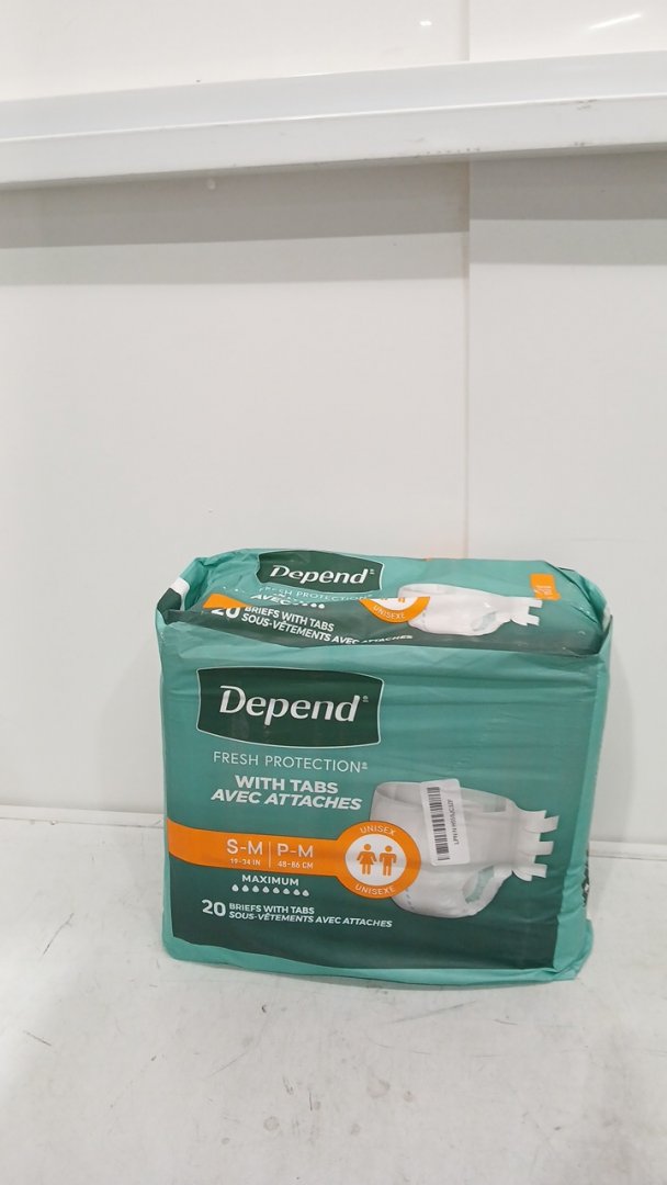 20PK adults unisex DEPENDS fresh PROTECTION With TABS - MAXIMUM BRIEFS - SMALL/medium - WHITE
