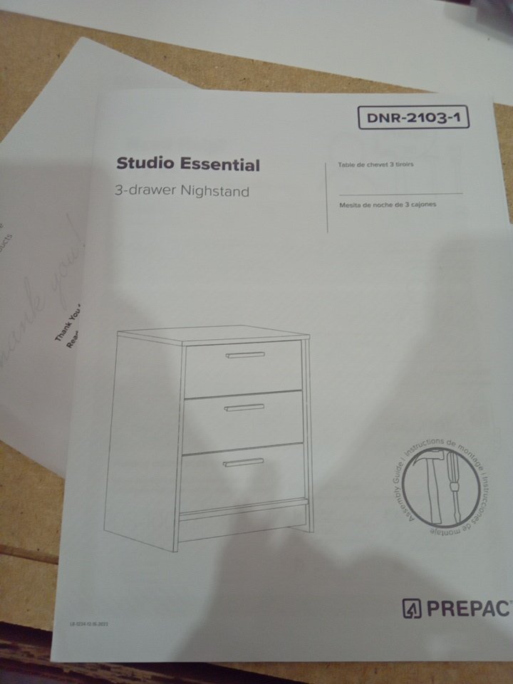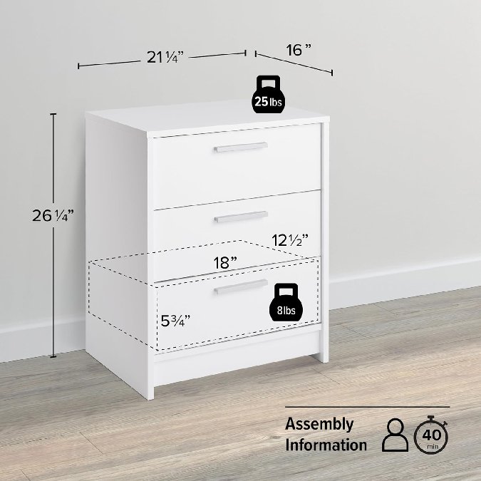 Prepac Studio Essentials Nightstand Bedside Table - 16" X 21.25" x 26.25" - white (model: WDNR-2103-1)