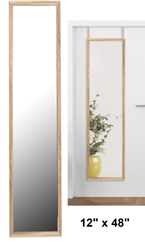 Truu Design Over-The-Door Classic Full Length Mirror - 12" x 48" - LIGHT WOOD(model: 56305dc-LW)